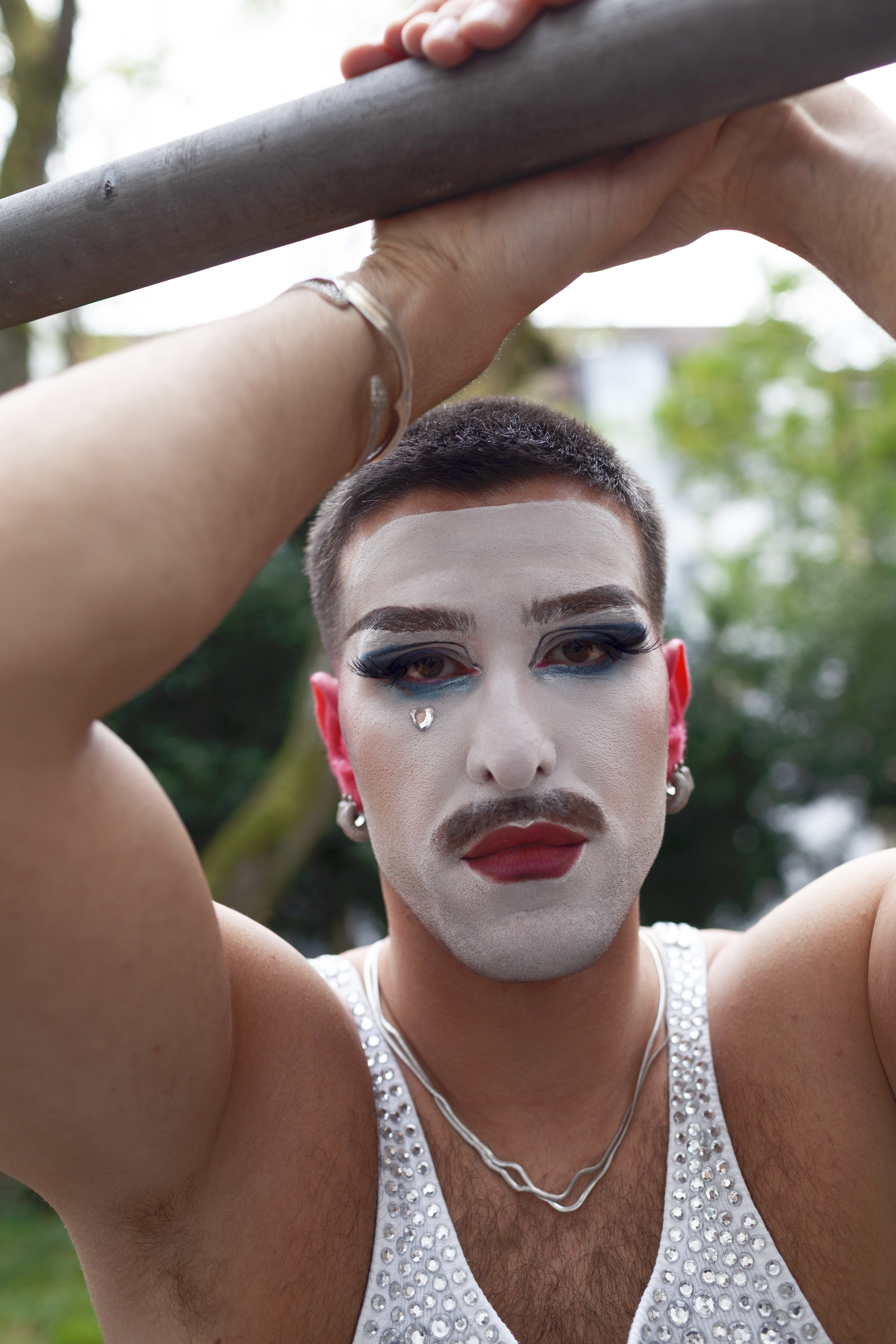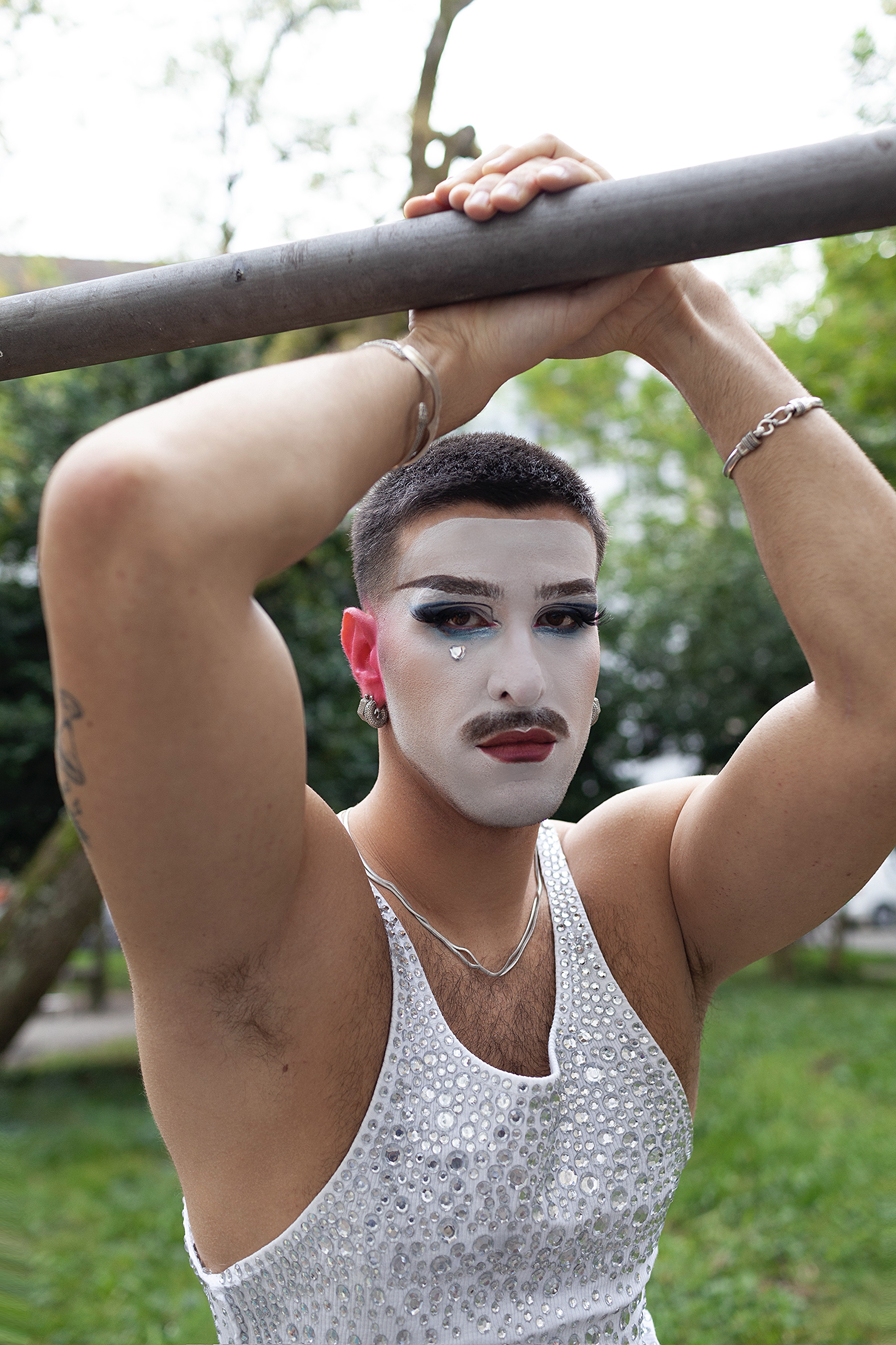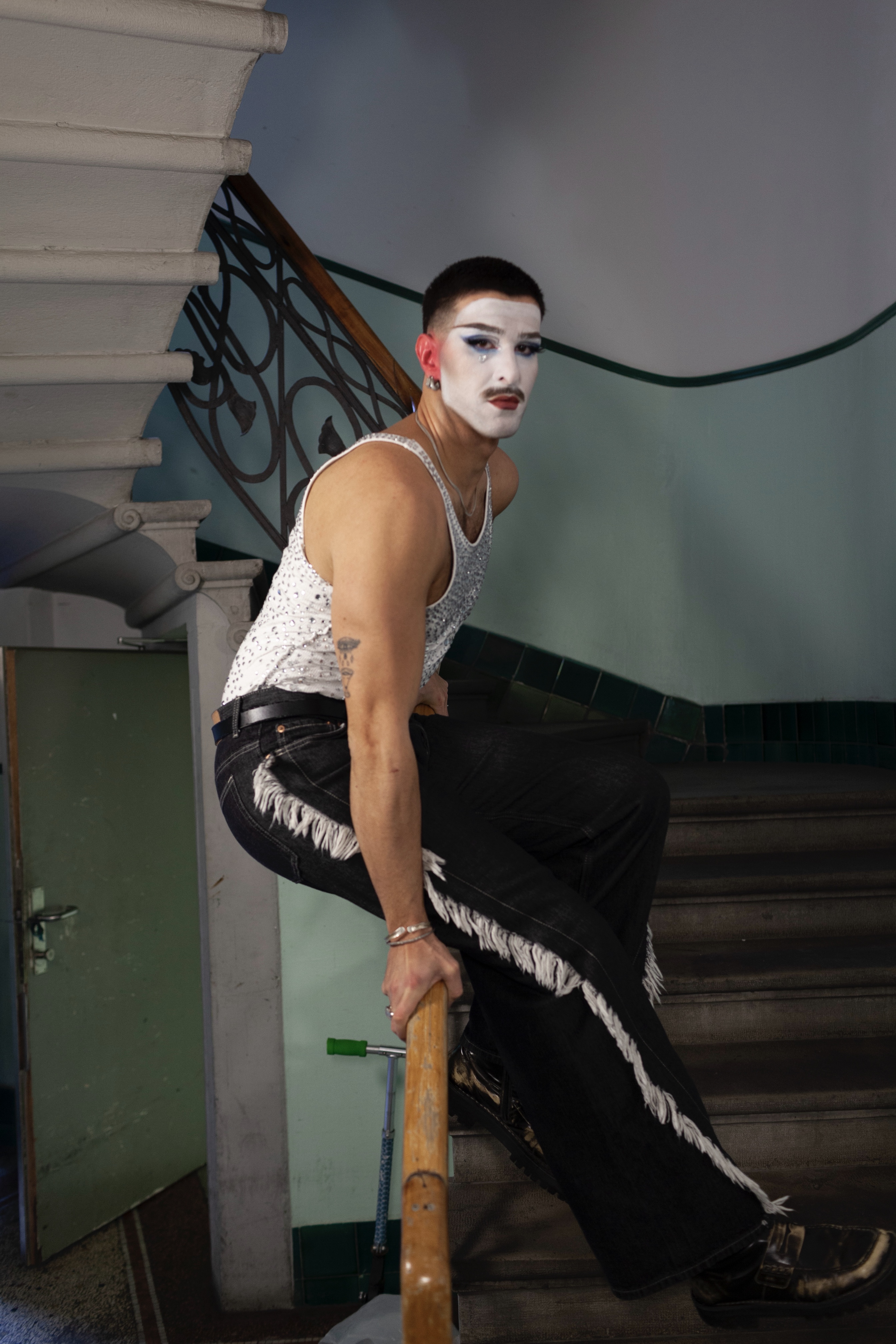 Placed on steel shelves, the works exist between warmth and coldness, exposure and protection. Like the table in the performance, these supports create distance while preserving proximity. Together, performance and sculpture trace the choreography of queer self-recognition: the constant oscillation between performing for the gaze and returning to one’s own.