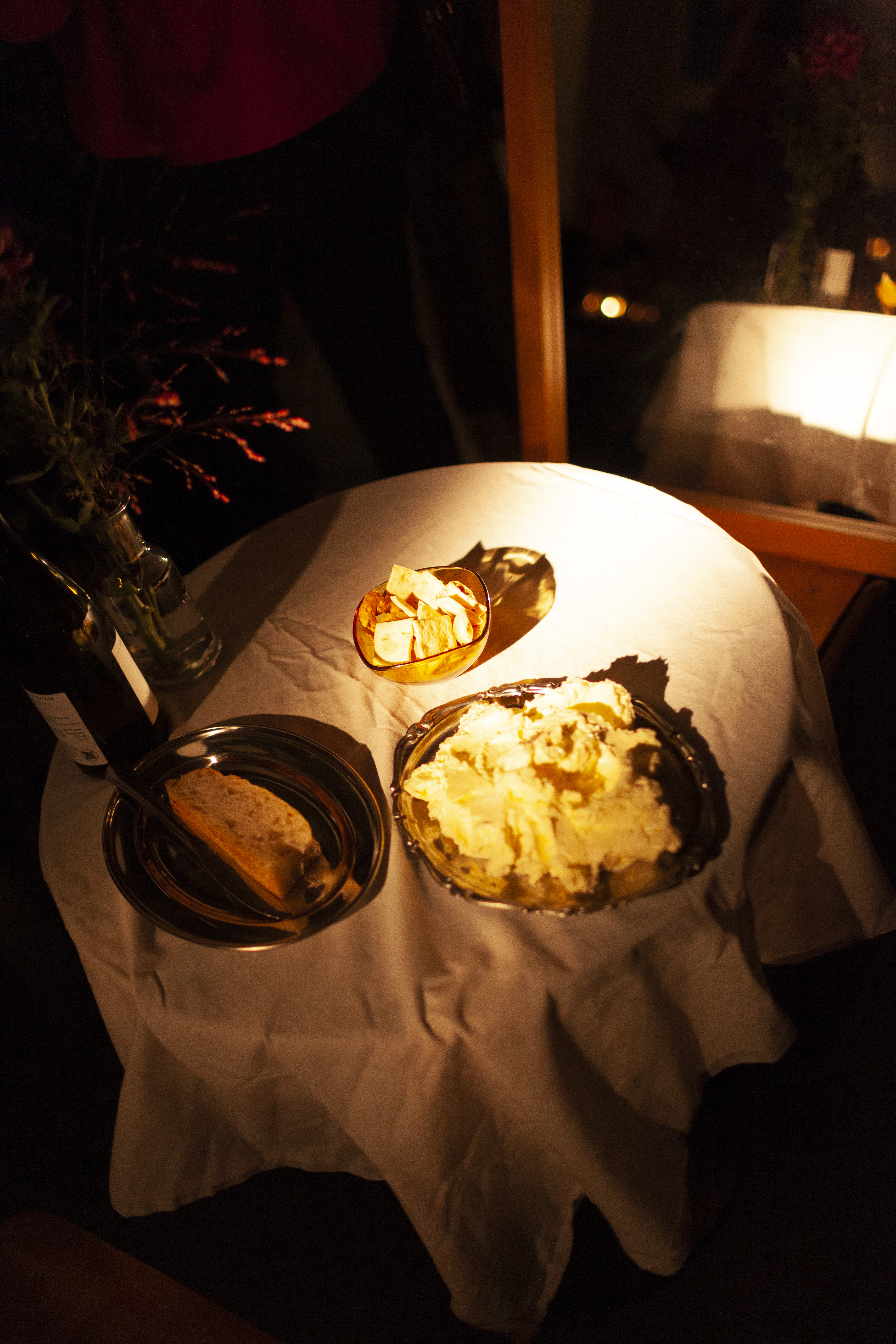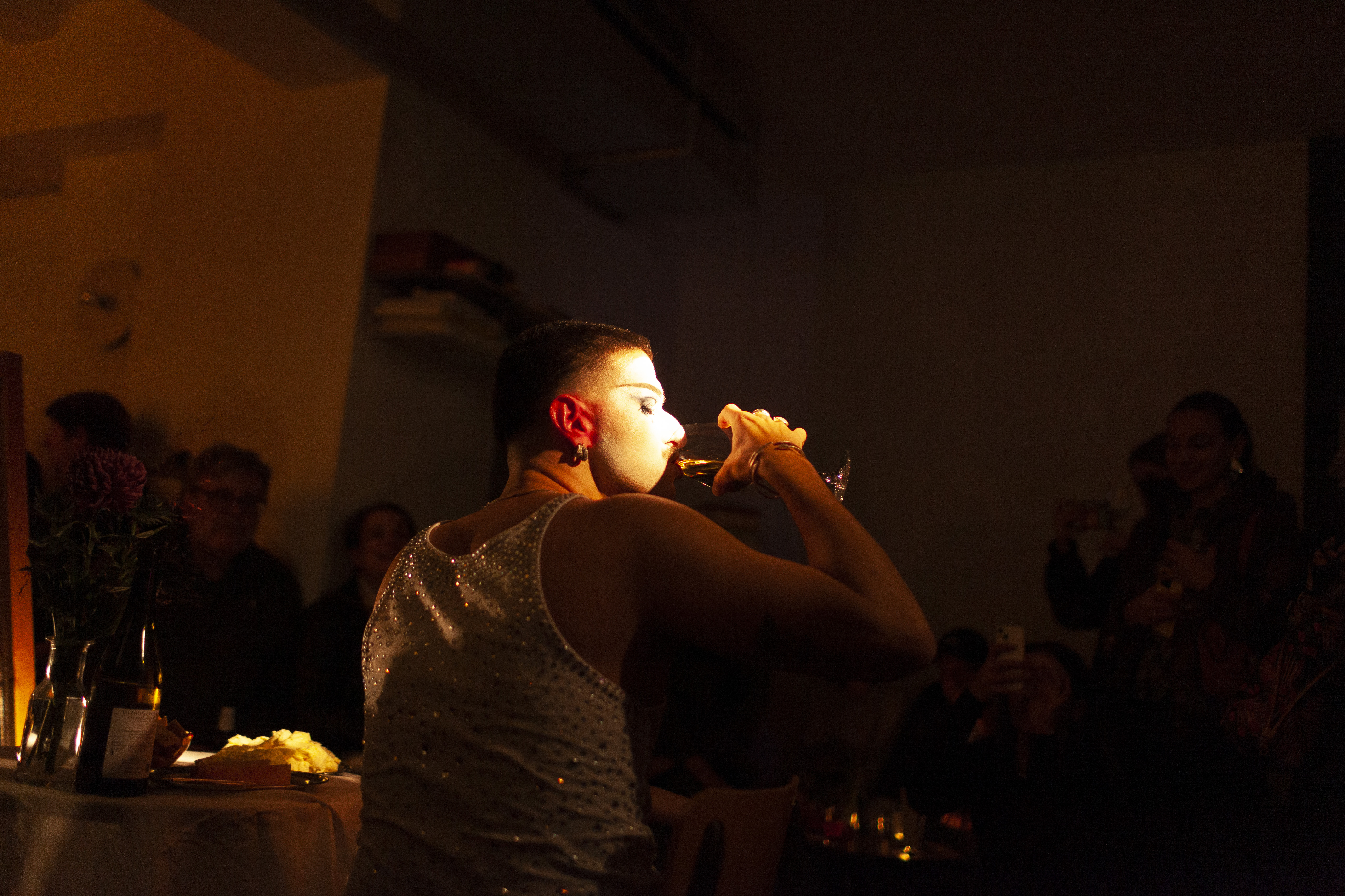 I raise the glass to my lips, and my own movements return to me, tracing each gesture, folding into my own presence, sharing the table with someone familiar.
