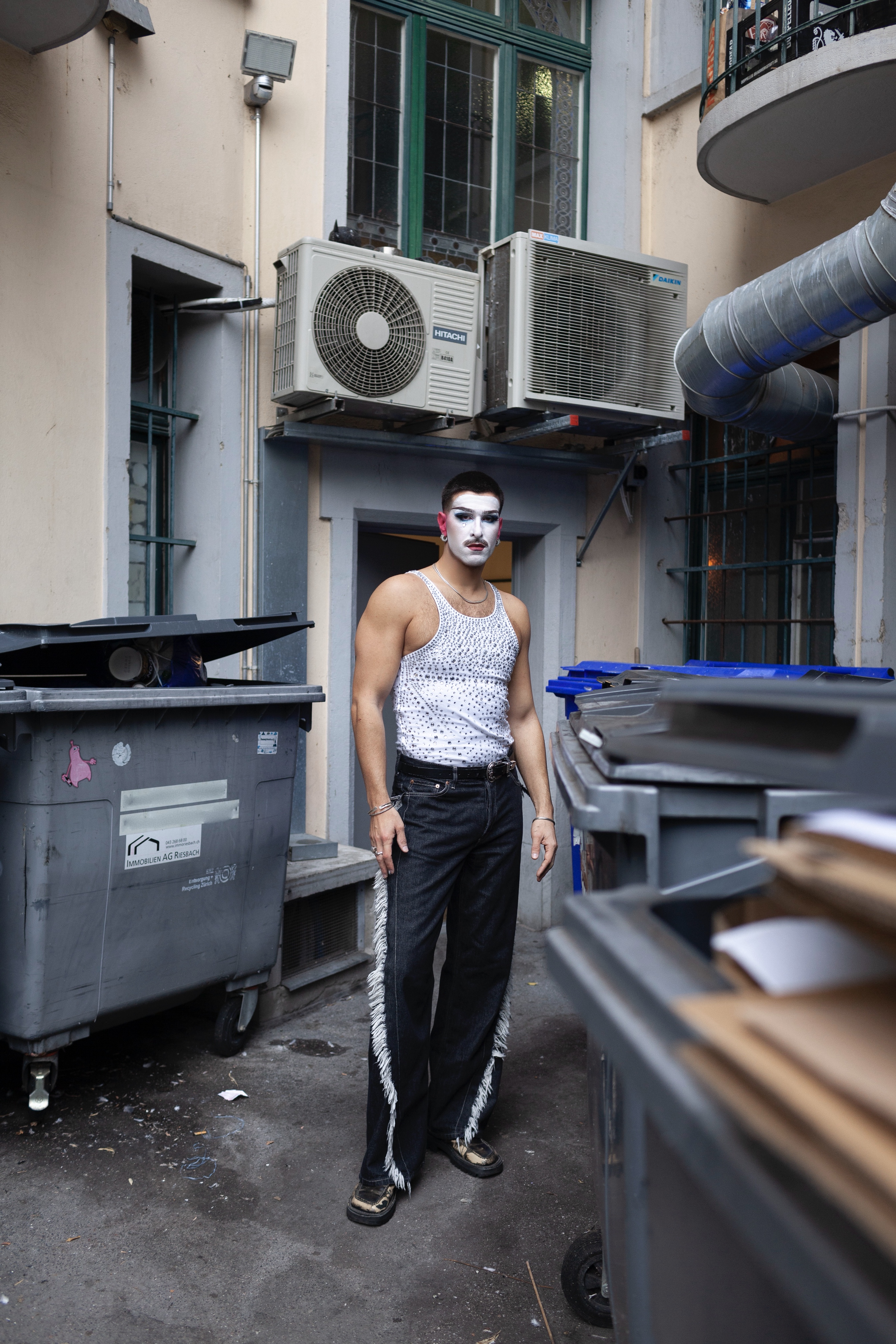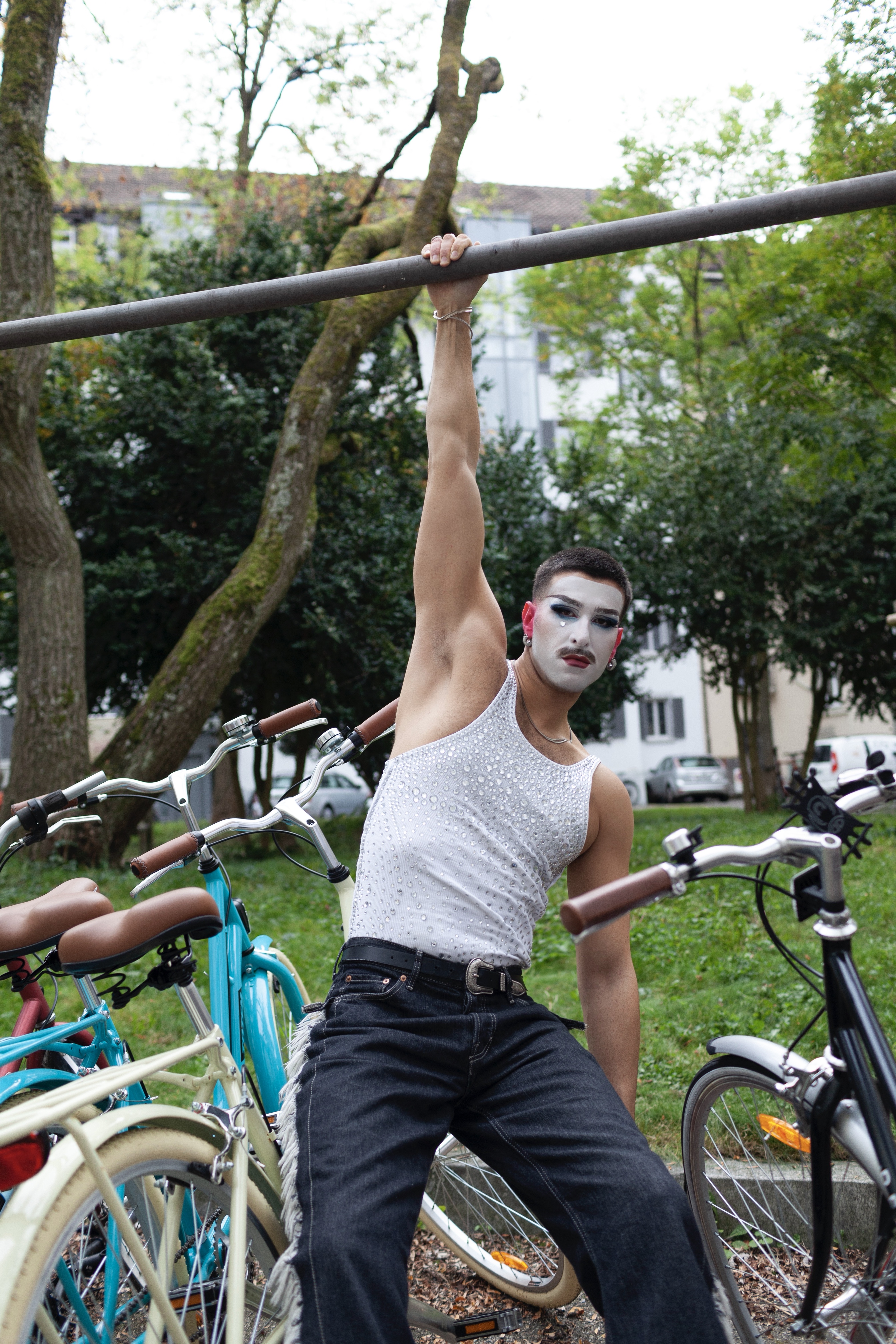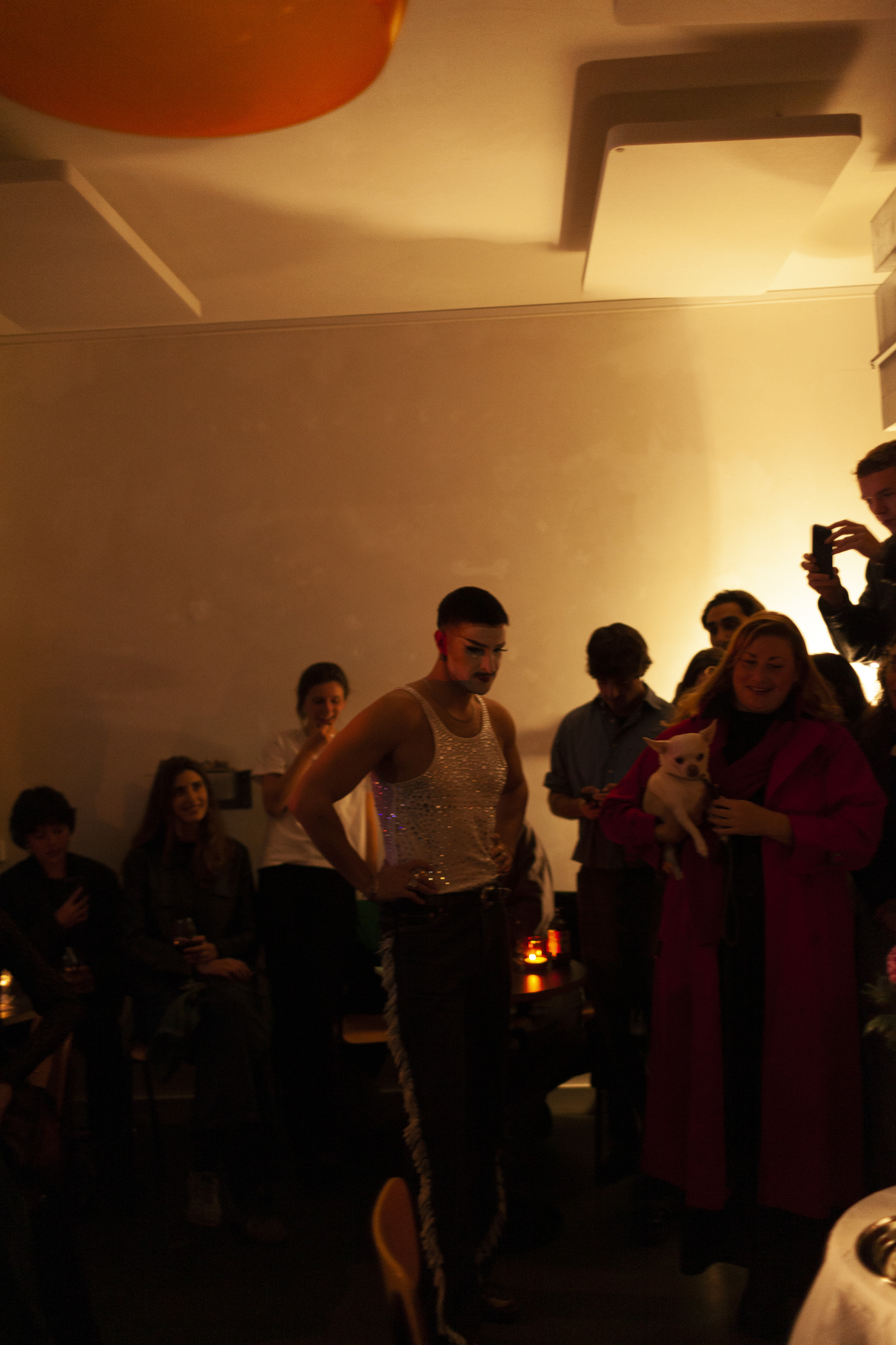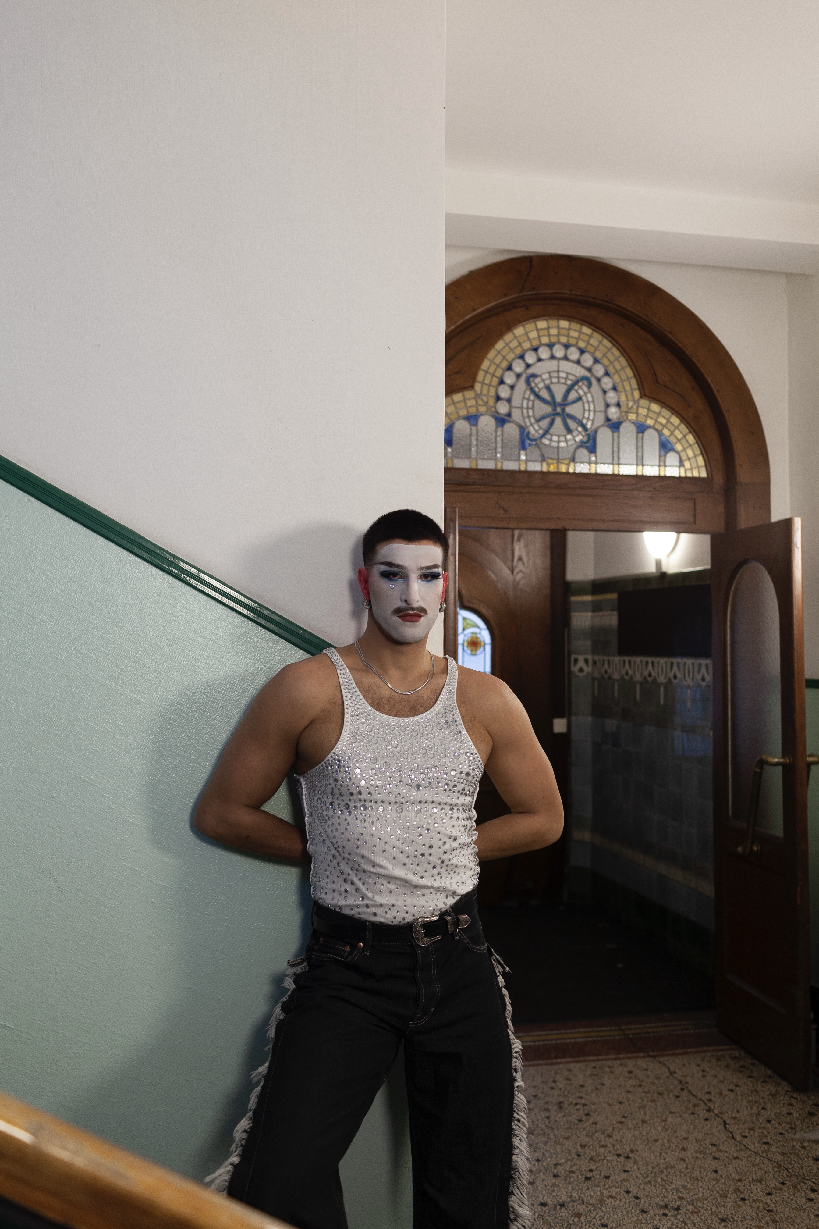 This gesture: turning performance into a mirrored duet with the self, anchors much of Popovic’s practice. Here, drag becomes less an act of transformation than of doubling: a method of looking at the self through another lens, embodying desire and distance simultaneously. The artist performs not to seduce an audience but to witness the fragile architecture of self-intimacy. The choreography of gestures (opening doors, paying bills, leaning forward, loosening arms) is repeated, inverted, and ultimately absorbed back into the performer’s body.
